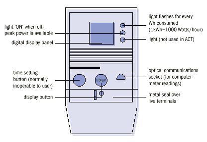 The electronic electricity meter reading can be found by using the display button. Readings are recorded in a non-volatile electronic memory, so no readings will be lost in the event the meter loses power.